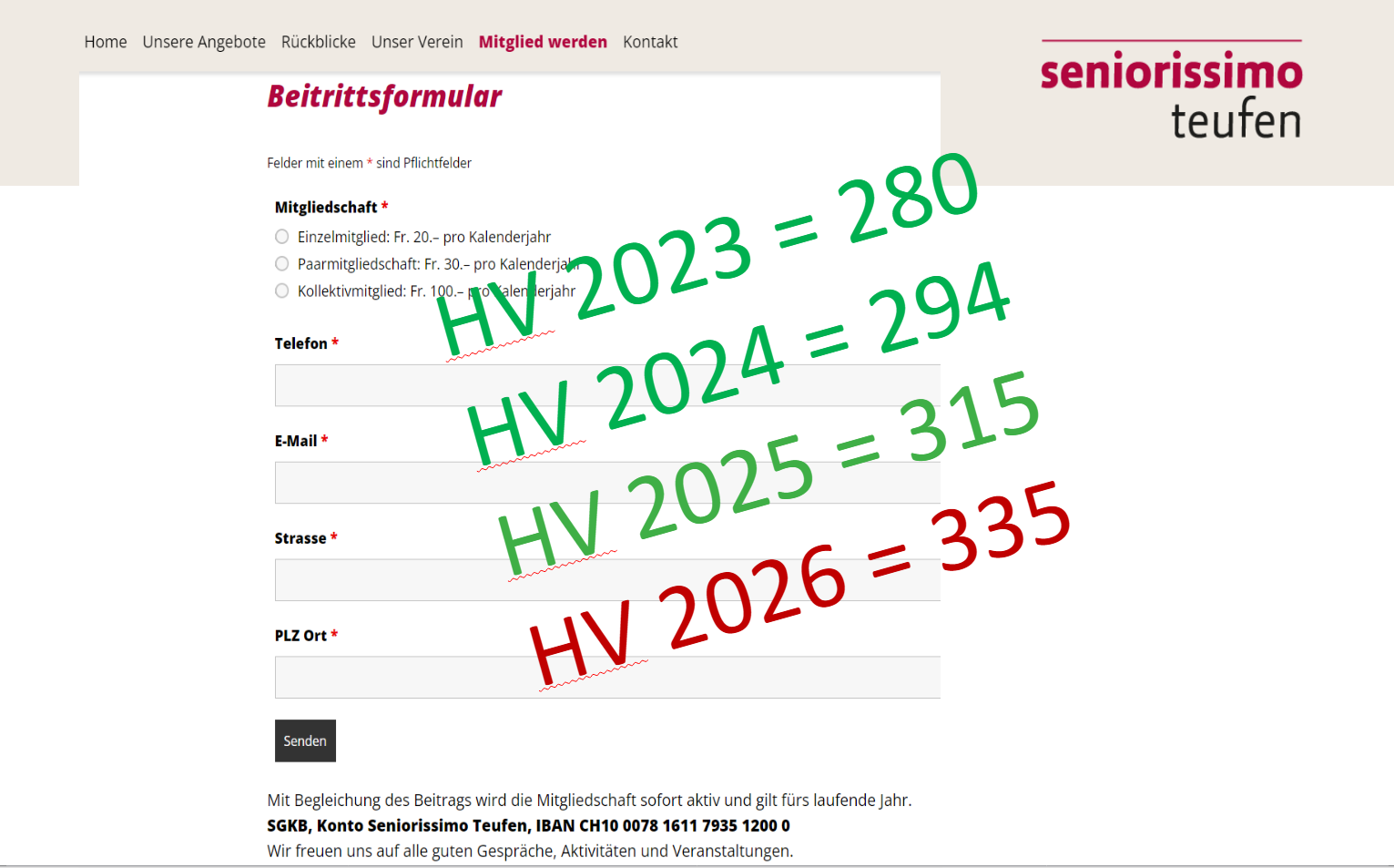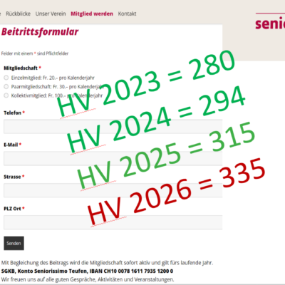 Mit einem herzlichen Willkomm durfte ich an „meiner“ fünften, der bereits 16. Mitgliederversammlung, 106 Seniorissimi begrüssen. Ebenfalls anwesend „unser“ Gemeinderat Urs Frei, welcher vorbildlich die Anliegen von uns Babyboomern in seinem Ressort Alter & Gesundheit vertritt. Danke für Deine Teilnahme und die sympathischen Grussworte: