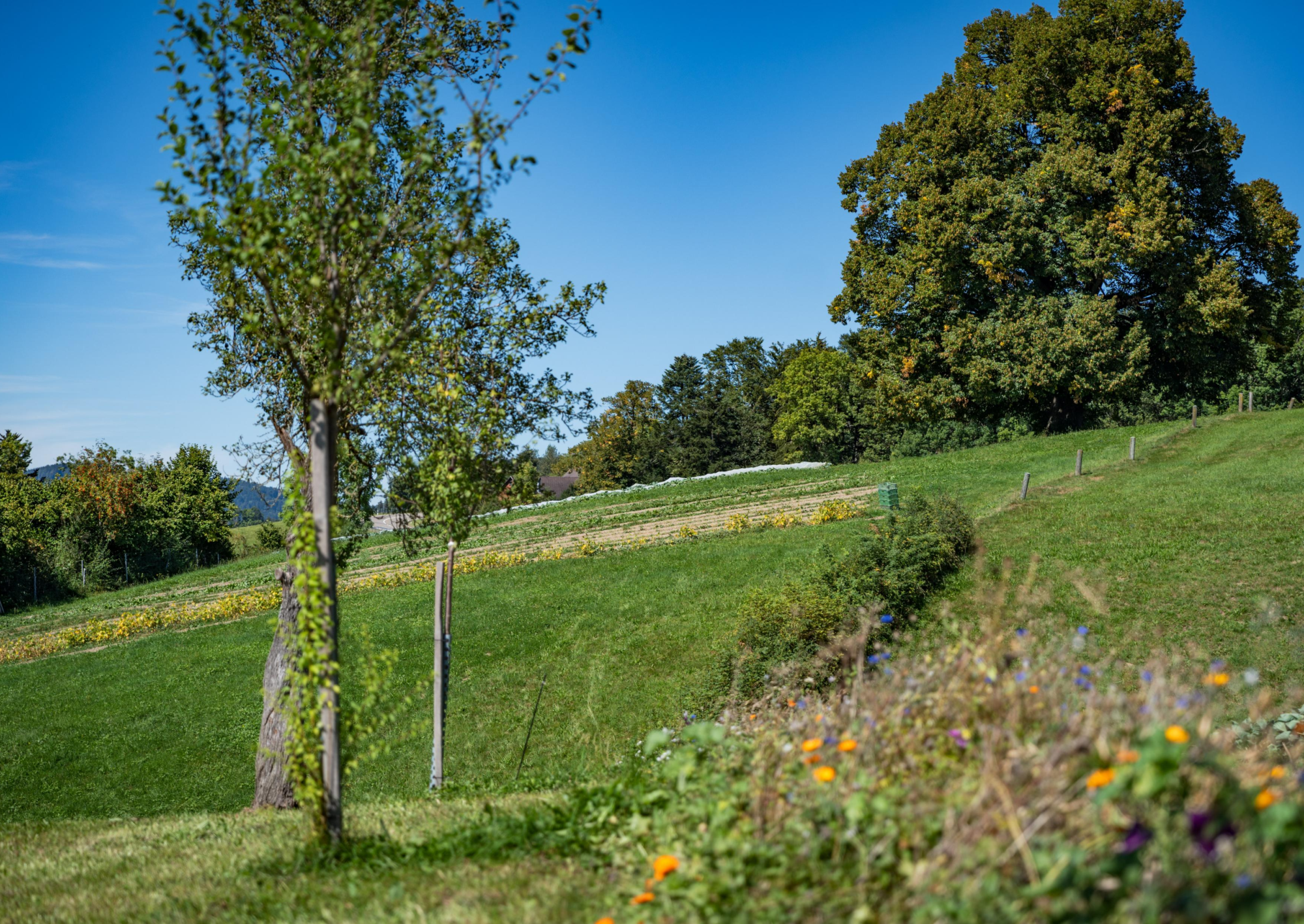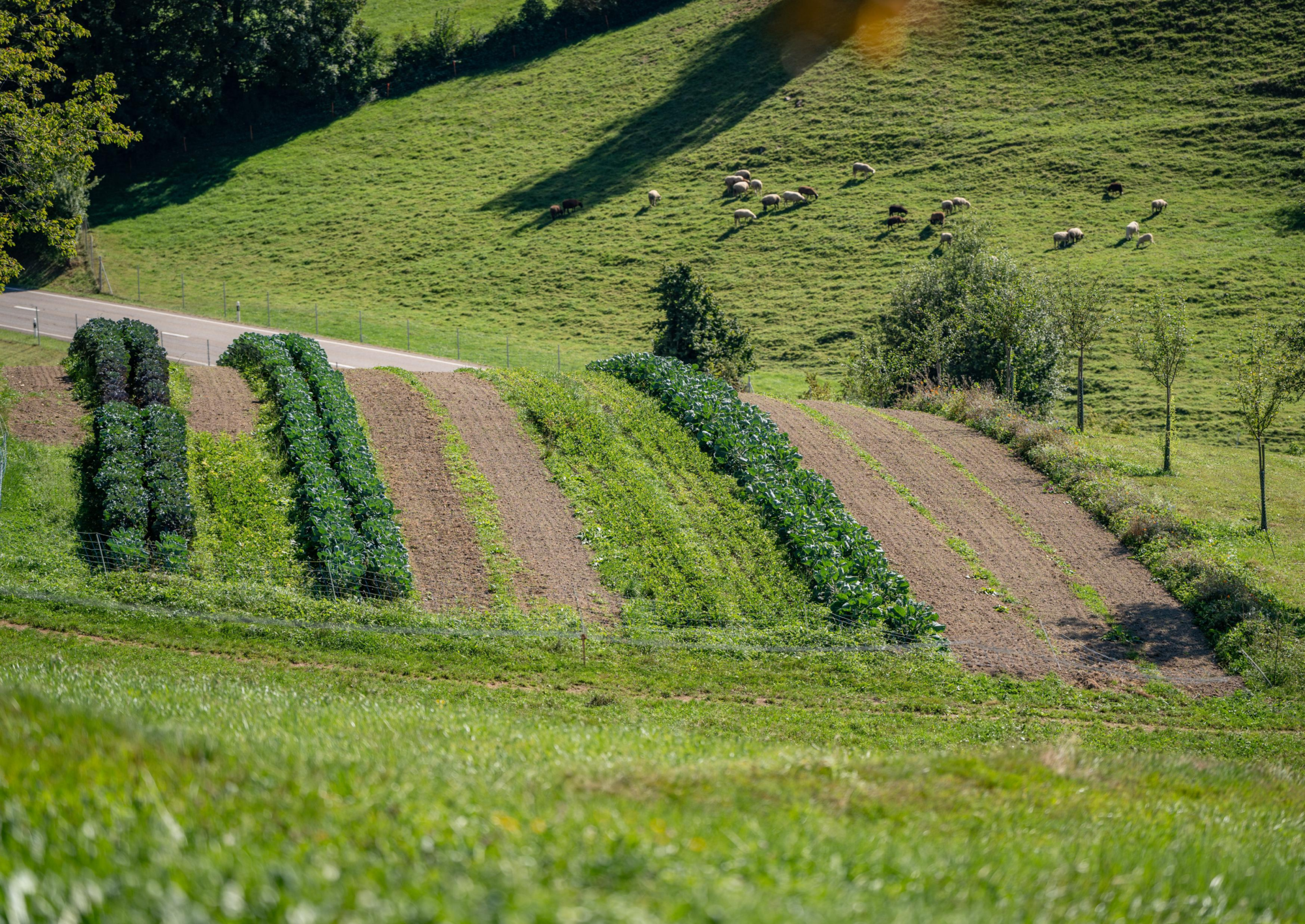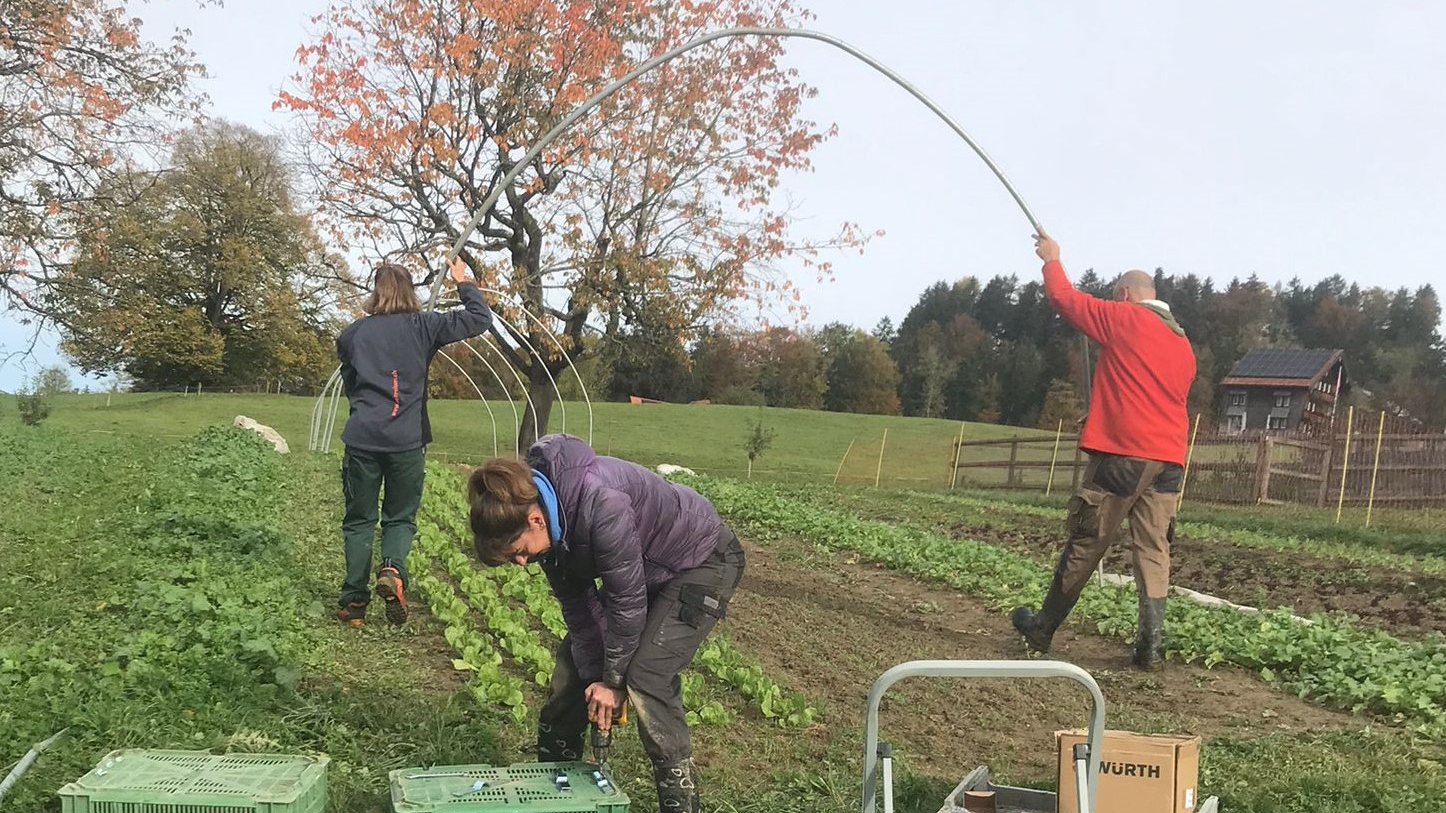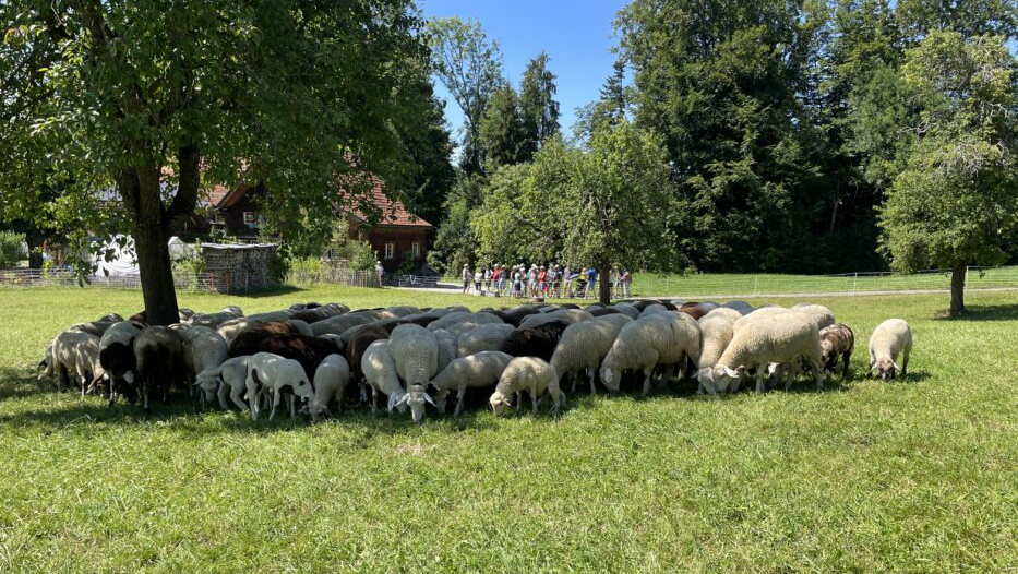 Es ist ein Bio-Landwirtschaftsbetrieb mit 30 ha landwirtschaftlicher Nutzfläche, verteilt über Teufen und Niederteufen, mit 145 Mutterschafen und ihren Lämmern, mit 170 Hochstamm-Obstbäumen sowie mit Anbau von Gemüse im Freiland und in unbeheizten Folientunnels. Im Winter sind es vorab die neugeborenen Lämmer, die teilweise bis zu fünfmal täglich «gschöppelet» werden müssen, die Thomas, Larissa und ihre Helferinnen und Helfer auf Trab halten. Die wunderbaren Fotos mit Mitarbeitenden, mit den Schafen und Lämmern sowie diejenigen vom Gemüseanbau zeigen deutlich, dass diese Arbeit nicht von zwei Personen alleine gestemmt werden kann.
